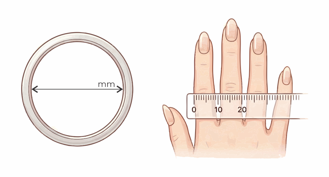 Con un anillo que ya tenés Tomá un anillo que te quede bien en el dedo donde querés usar el nuevo. Con una regla milimétrica, medí el diámetro interno — la distancia de un borde al otro pasando por el centro del hueco. Esa cantidad de mm es tu talle.